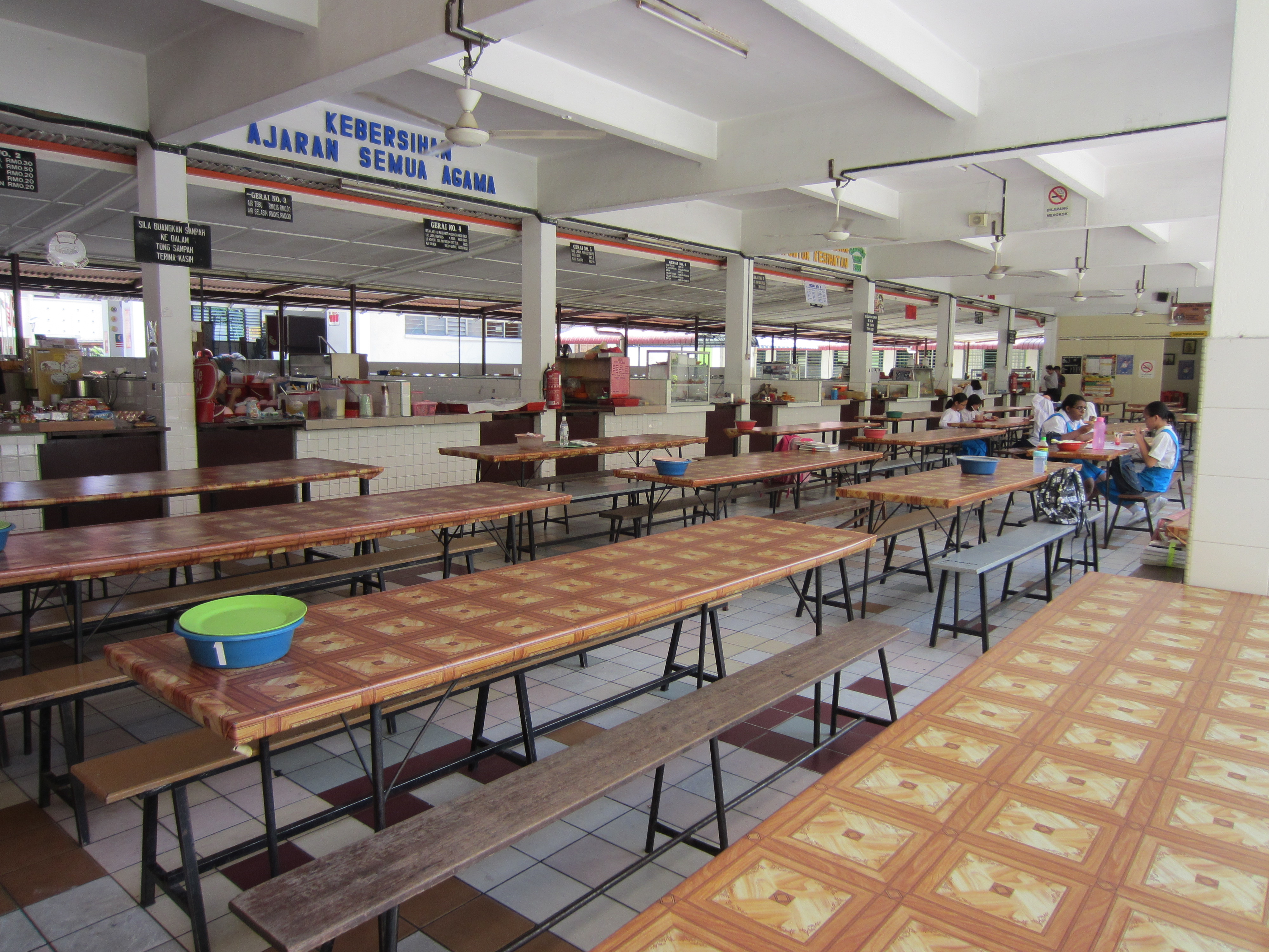 My best memory is the canteen. It served food which, living in England today, I would kill for. Fried noodles, rice dishes, steaming laksa, juicy tropical fruit. During a twenty-minute break, we would devour our food while sitting on benches in a large open-air area, under the cool of ceiling fans (see photograph).