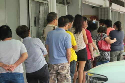 Therefore, we go to great lengths to discuss what to have for lunch while munching our breakfast, what to eat for dinner before we’ve finished lunch, and so on. Our meals are mapped out days in advance. We will battle traffic and thunderstorm; we will drive miles for the sake of the juiciest mangoes, the freshest fish and the best moon cakes. In case you’re wondering what these look like, the photos below were what the people above queued for.