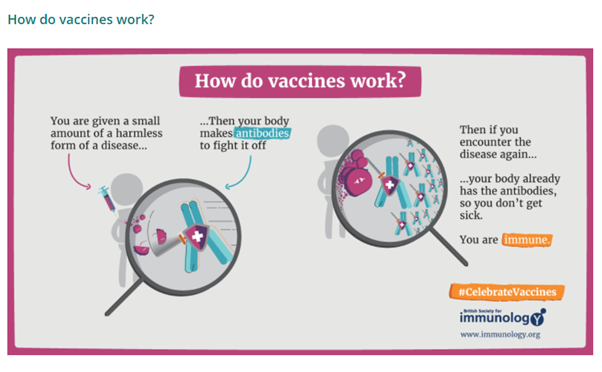 The diagram above is taken from the British Society of Immunology’s website and is the best I’ve found to summarise the vaccination process.